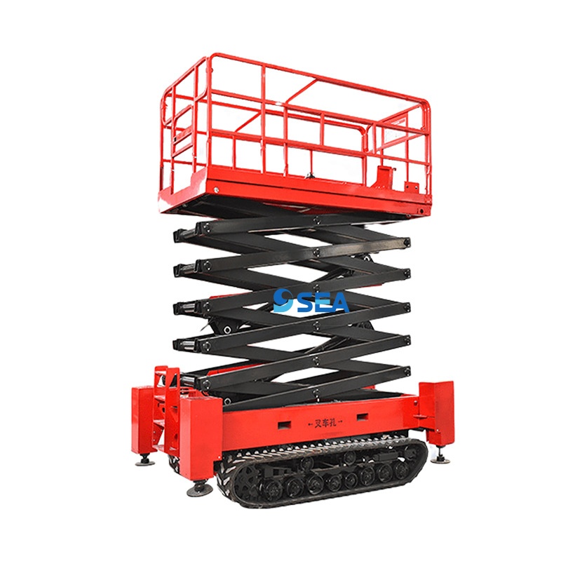 Our electric scissor lifts are energy-efficient and environmentally friendly, with low noise and zero emissions. They have a maximum working height of 6 to 12 meters, suitable for outdoor work environments with rugged terrain. The crawler self-propelled scissor lift can operate without being limited by road conditions. This type of scissor lift is ideal for harsh terrains such as mud, snow, or sand. It has a stable and reliable structure and is widely used in forests, grasslands, construction sites, and other outdoor locations. When transporting building materials and workers, the lift platform’s stable lifting performance can effectively prevent materials from falling and accidents involving workers, thereby ensuring construction safety. Custom voltage options are available, including 220V, 110V, 380V, or DC, according to different needs. Color and size can also be customized to meet various customer requirements.